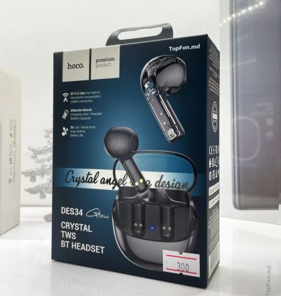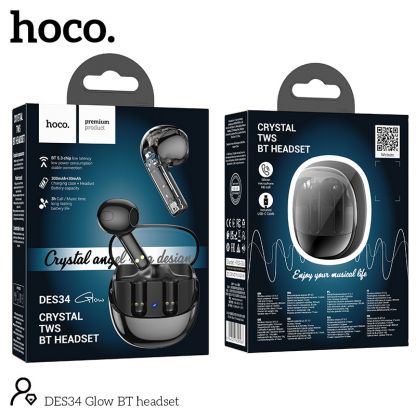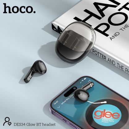 Беспроводные наушники HOCO DES34 Glow BT headset с полупрозрачным корпусом. Время работы в режиме разговора - 3,5 часов. В режиме ожидания - 180 часов. Bluetooth-наушники