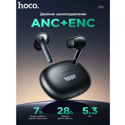 Представьте себе: великолепное звучание с глубокими басами, качественная микрофонная система ENC, активное шумоподавление ANC, длительное время автономной работы (до 7 часов), цифровой дисплей уровня заряда, улучшенная контактная группа, возможность одновременного подключения к двум устройствам и удобный зарядный кейс, который позволяет легко извлекать наушники, даже если у вас крупные руки. Эти характеристики делают Hoco EQ5 идеальными для настоящих ценителей качественного звука.