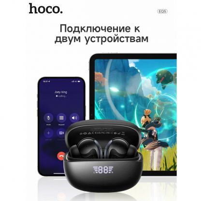 Легкий корпус наушников и кейса изготовлен из высококачественного пластика, придавая им компактность и портативность. С разъемом Type-C на кейсе для зарядного кабеля и совместимостью с операционными системами iOS, Android и Windows, Hoco EQ5 легко взаимодействуют с различными устройствами.