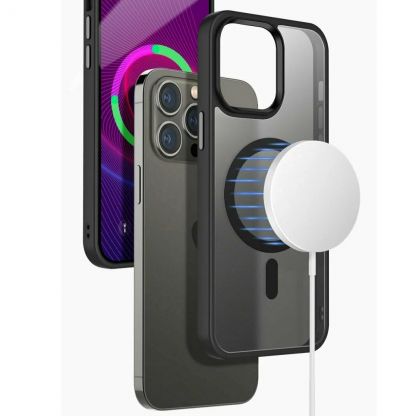Прозрачный противоударный чехол с MagSafe с черными рамками для смартфона iPhone 15 Pro. Благодаря утолщениям по контуру, защищает камеры и экран устройства.
