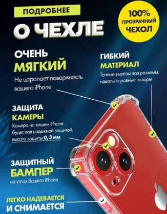 Чехол прозрачный противоударный с защитой камеры для iPhone 13 (на айфон 13)
