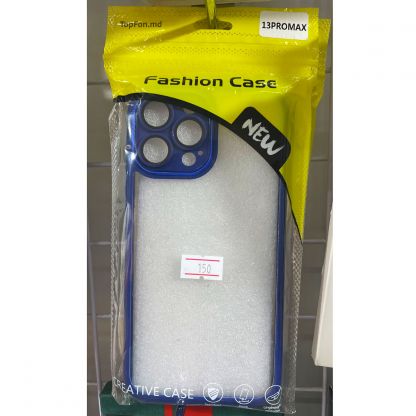 Стильный силиконовый чехол для iPhone 13 Pro Max. Прозрачный с синей рамкой и защитой камер.