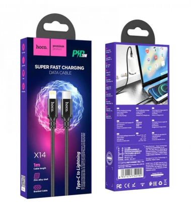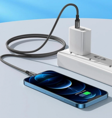 Кабель-переходник с Lightning на Type-C в тканевой оплетке черного цвета.