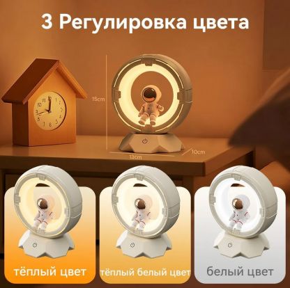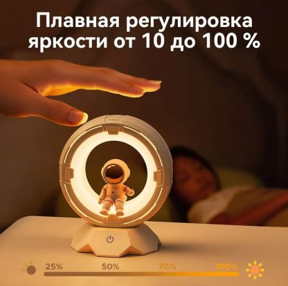 Ночник-космонавт станет отличным элементом декора. Этот светильник добавит уют в любое помещение. Он оснащен сенсорным управлением, что делает его использование простым и удобным. Регулировка яркости позволяет легко настроить свет под настроение или время суток.