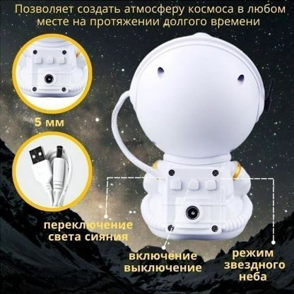 Мини проектор Космонавт со звездой выглядит милым и привлекательным. Размеры ночника всего 12.5 см в высоту и 8.5 см в ширину.