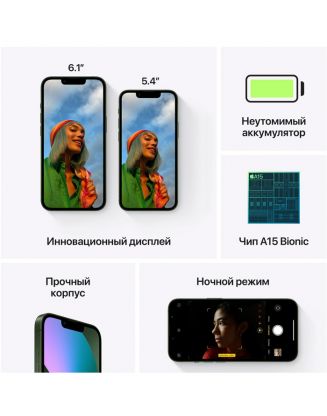 Сверхширокоугольная камера на iPhone 13 способна захватывать больше деталей в условиях недостаточной освещенности, а широкоугольная камера позволяет улавливать на 47% больше света для создания более качественных фотографий и видео. Режим "Киноэффект" автоматически добавляет эффекты перемещения фокуса и размытия, делая ваши видео выглядящими как профессиональное кино.