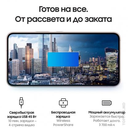 Тонкие рамки и симметричные боковые грани смартфона Samsung Galaxy S22 обеспечивают максимальное использование полезной площади экрана. Его 6.1-дюймовая диагональ с разрешением 2400x1080 пикселей идеально подходит для просмотра видео, игр и серфинга в Интернете. Экран яркий даже при солнечном свете, а цвета остаются яркими и реалистичными. Матовая поверхность корпуса добавляет устройству благородный вид, который подчеркивается его правильной геометрической формой и скругленными углами.