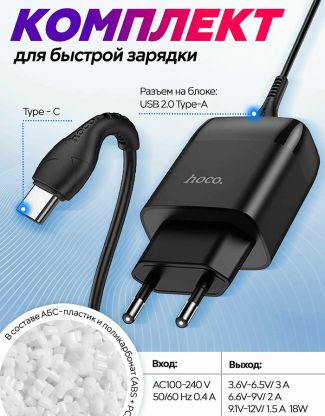 Зарядное устройство Hoco C72Q Glorious, 18W, черный